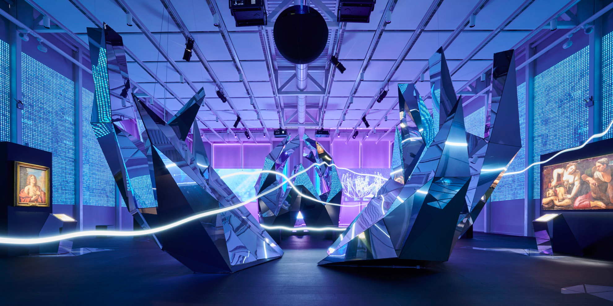 The staging of the exhibition was imagined as a talking architecture where the definition of space is determined by the positioning of the works, which replace the structure: they become both walls and pillars, but also a support on which to overwrite the content. The space is imagined as an immaterial architecture of knowledge which, like a book, intends to record history and the future.
