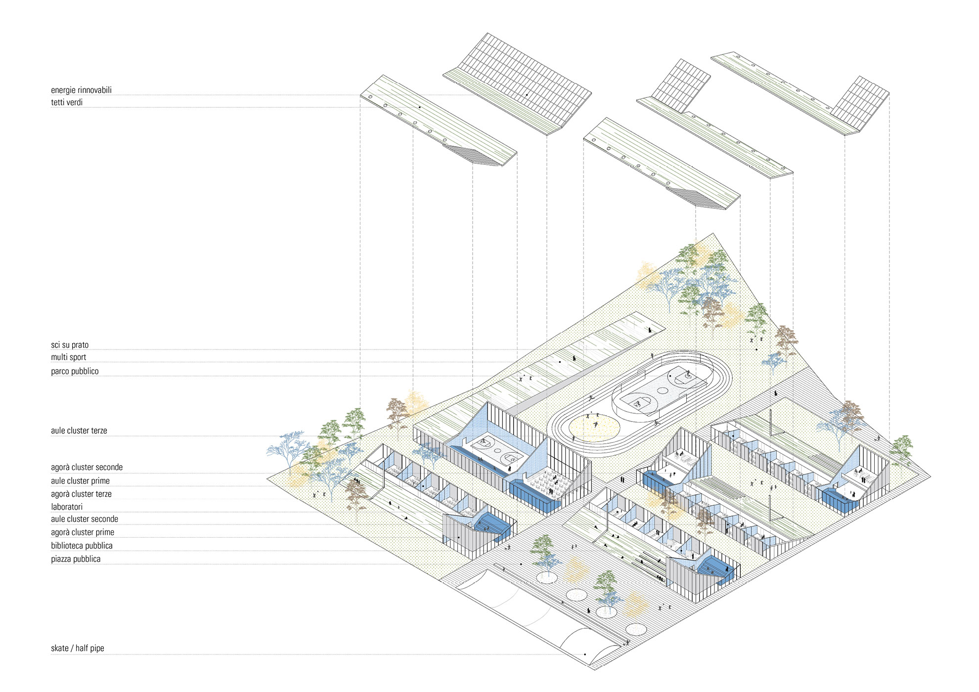 All’origine della parola scuola, dal greco scholè, va compreso il suo universale significato, ossia di vacanza, riposo e tempo libero. La sua evoluzione è nell’essere inclusiva e potersi adattare a centro civico aperto ad attività pubbliche, culturali e sportive che divengono estensione complementare a quelle strettamente scolastiche.