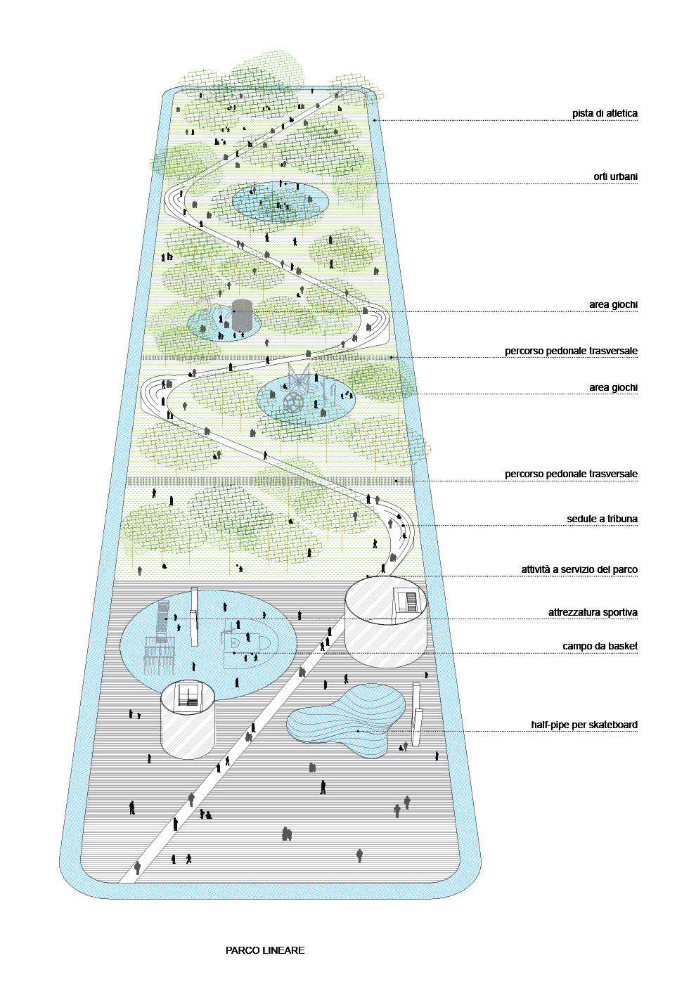 Restituire alla cittadinanza le risorse per l’erogazione di servizi è sempre stato il compito dell’Agenzia delle Entrate. Allo stesso modo la composizione architettonica del progetto ne riduce al minimo l’ingombro a terra: il grande volume destinato all’archivio si solleva dal suolo e, sotto di esso, si genera uno spazio pubblico coperto per attività a servizio della comunità.