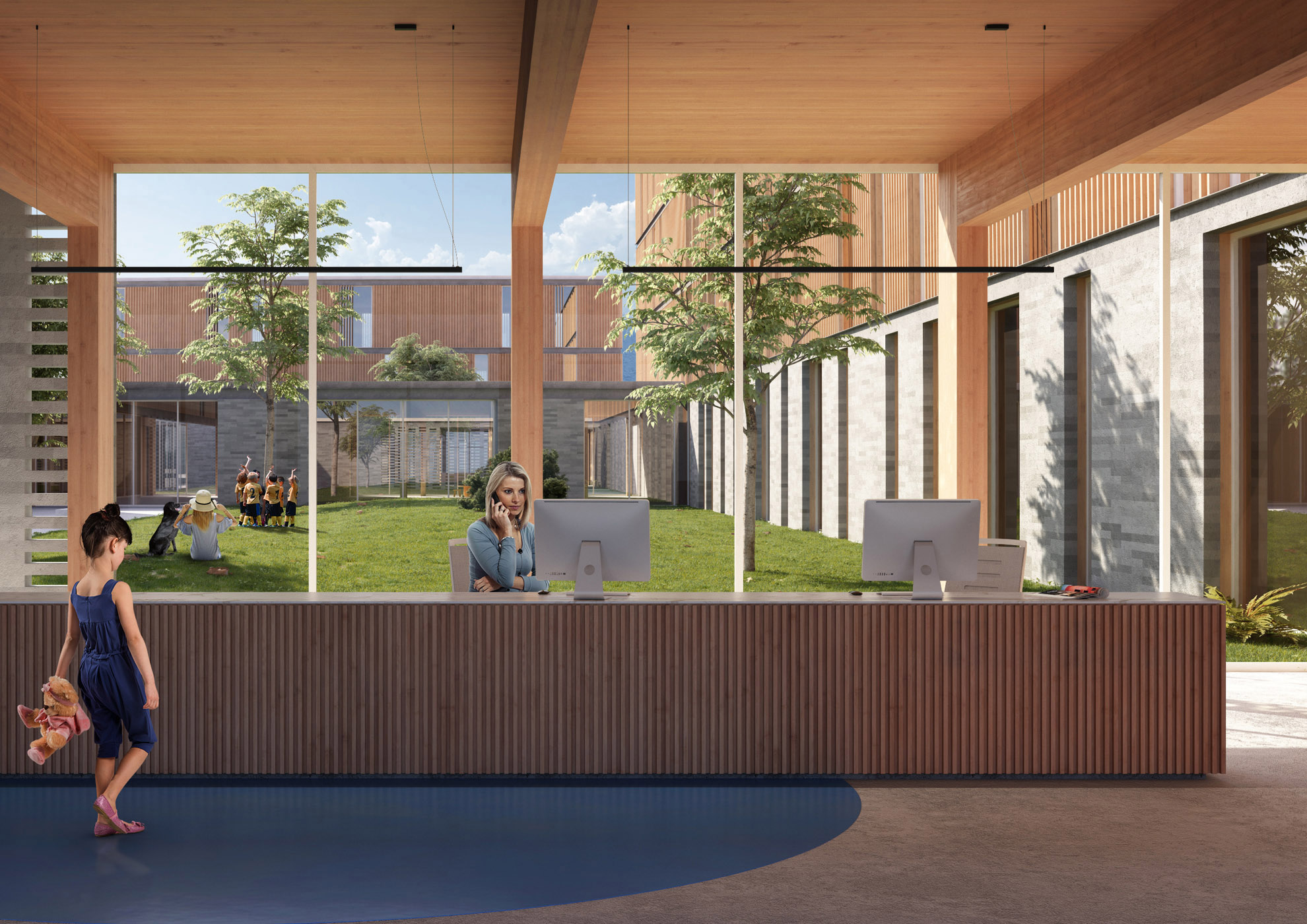 La misura, il paesaggio e la luce sono gli elementi alla base del progetto del nuovo centro diurno ed ambulatoriale; l’articolato programma funzionale è stato rielaborato in cluster tematici a ciascuno dei quali è associato uno spazio aperto protetto con una precisa relazione rispetto alle attività, alla qualità visiva ad al rapporto con il paesaggio.